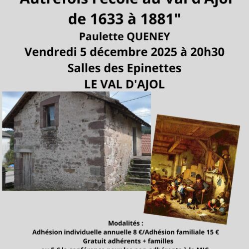 Conférence Débat “Autrefois l’école au Val d’Ajol de 1633 à 1881”