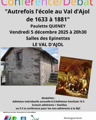 Conférence Débat “Autrefois l’école au Val d’Ajol de 1633 à 1881”