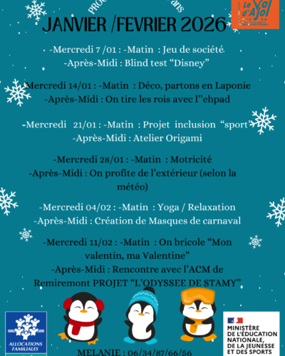 programmes du Club ADO et des ACMContact ÉMILIE 06/16/62/16/38 ou acceuilperiscolaire@valdajol.frou MÉLANIE 06/34/87/66/56 ou acmmairie@valdajol.fr