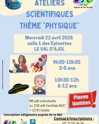 ATELIERS SCIENTIFIQUES SUR LA PHYSIQUE pour les 3-5 ans & les 6-12 ans